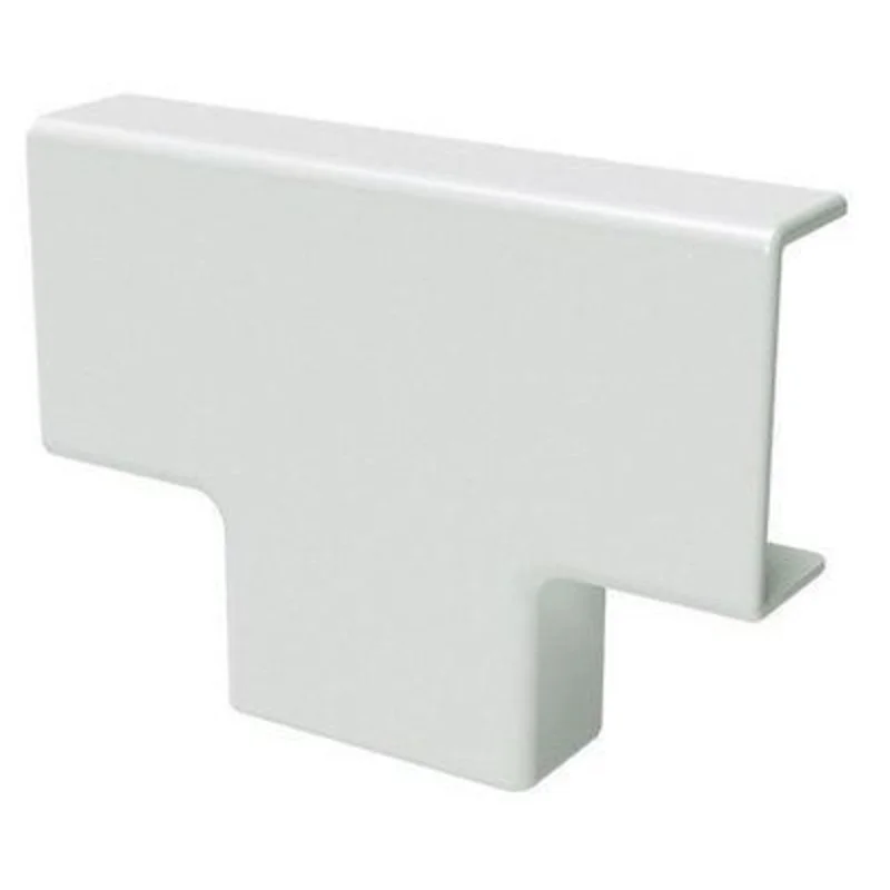 Тройник IM для мини-каналов. Назначение: эстетичное оформление мест стыковки, поворота трассы, отвода (спуска) от прямой трассы. Характеристики: материал - АБС-пластик. Типоразмер: 40х17 мм. Цвет: белый