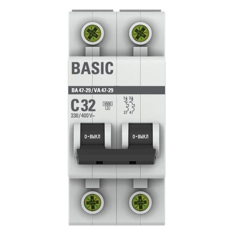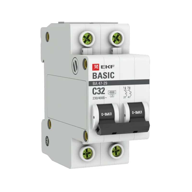 Купить EKF mcb4729-2-32C - Выключатель автоматический модульный 2п C 32А 4.5кА ВА 47-29 Basic