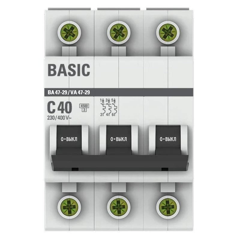 Купить EKF mcb4729-3-40C - Выключатель автоматический модульный 3п C 40А 4.5кА ВА 47-29 Basic