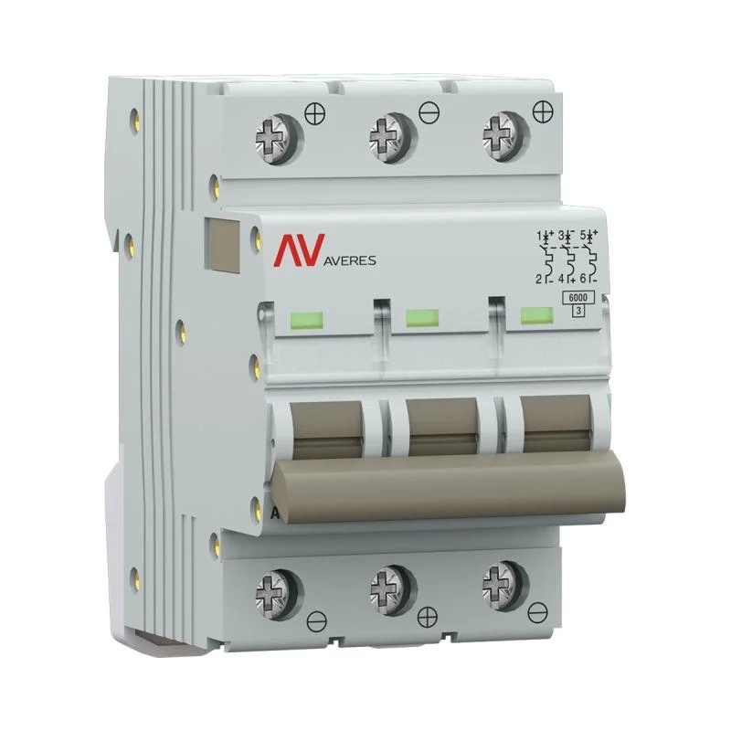 Питание - Низковольтное оборудование - Выключатель автоматический модульный - EKF mcb6-DC-3-04C-av - Выключатель автоматический модульный 3п C 4А 6кА AV-6 AVERES