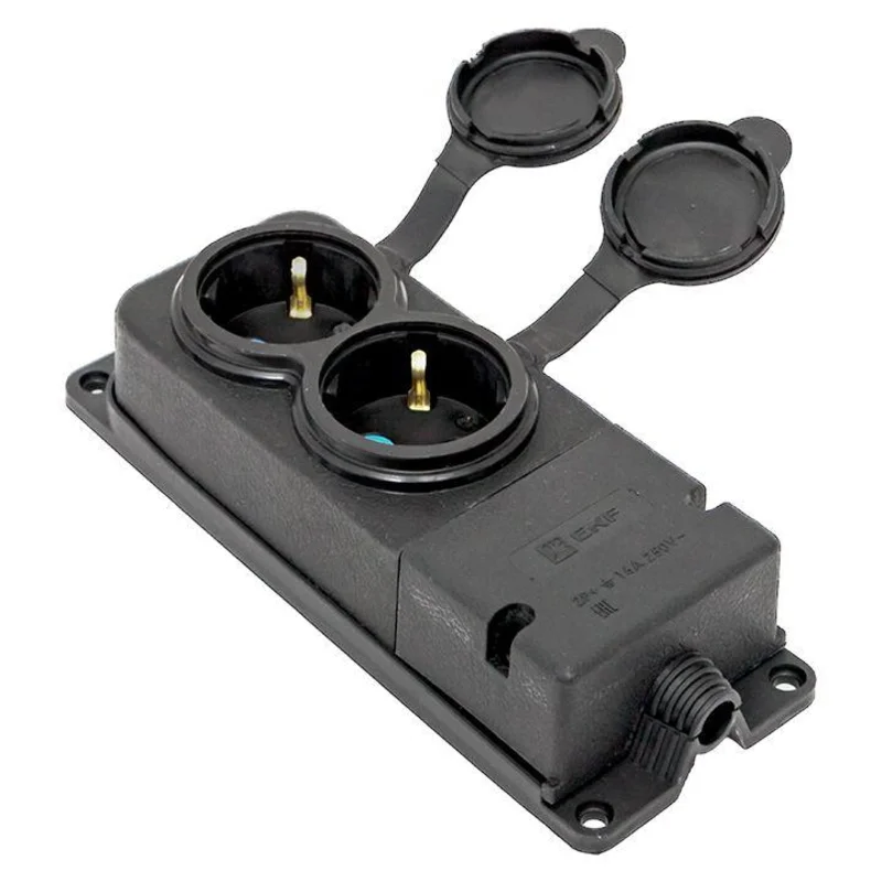 Купить EKF RPS-018-16-230-44-r - Розетка 2-м 16А IP44 2P+PE 230В с защ. крышками каучук PROxima