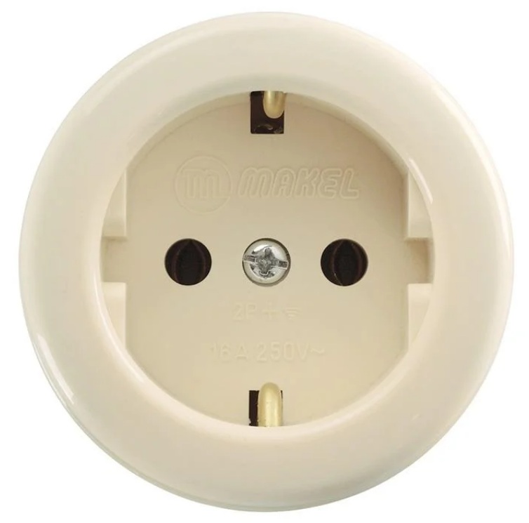 Купить Makel 16011 - Розетка 1-м ОП 16А IP20 круглая с заземл. крем.