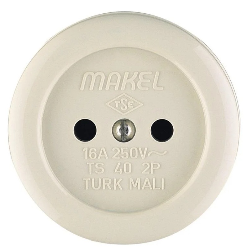 Купить Makel 16012 - Розетка 1-м ОП 16А IP20 круглая без заземл. керамика беж.