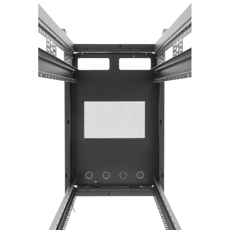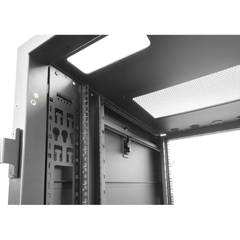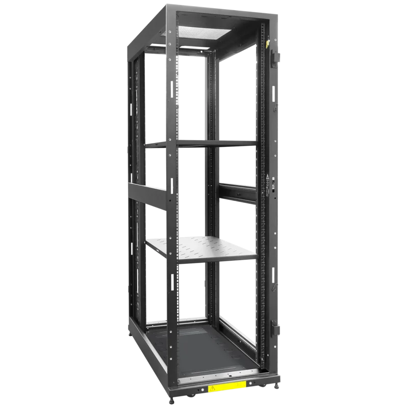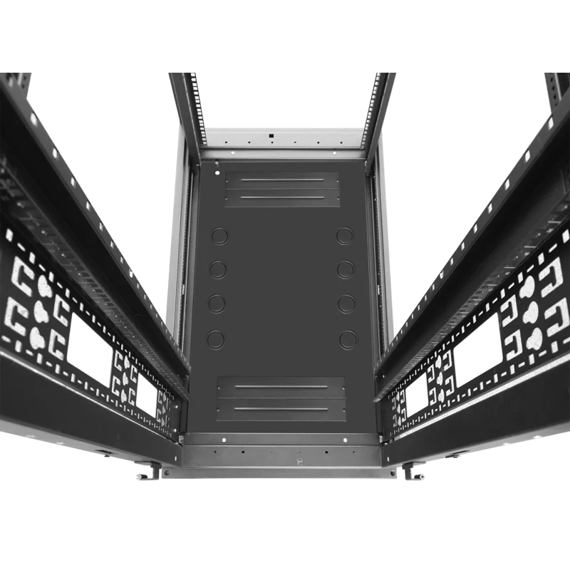 На профилях нанесена маркировка юнитов. Доступ для монтажа, коммутации и обслуживания возможен с четырех сторон, через боковые горизонтальные стенки, переднюю и заднюю двери. Шкаф имеет 4 вертикальные направляющие, с удобной регулировкой по глубине.