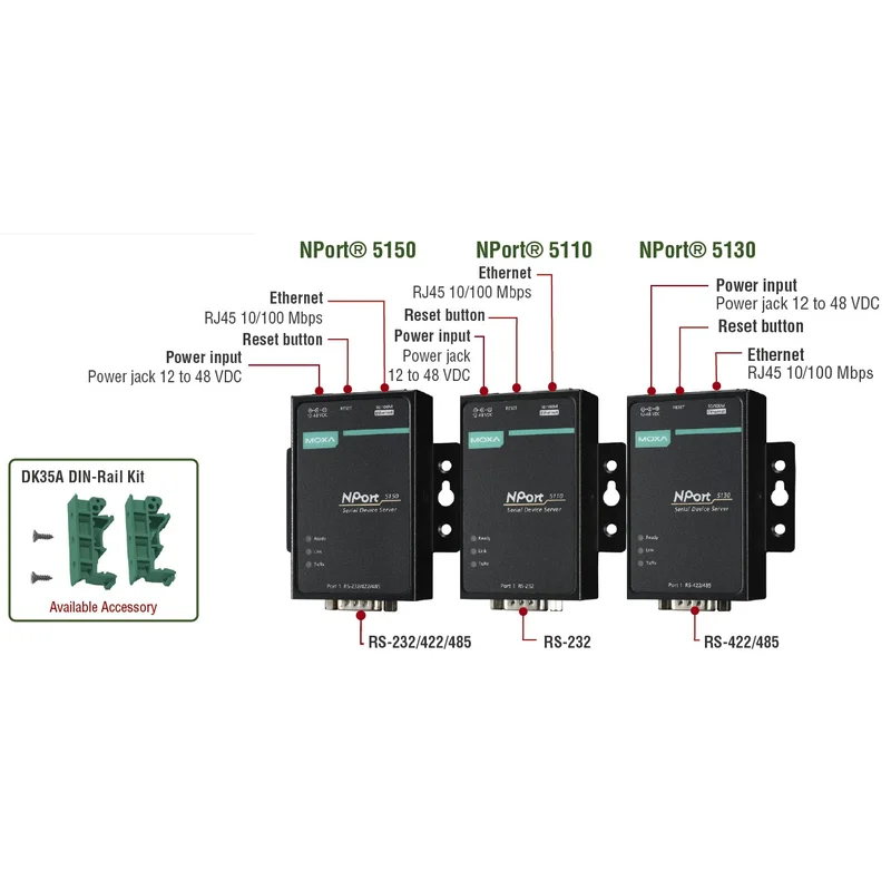 MOXA NPort 5150 - 1-портовый асинхронный сервер RS-232/422/485 в Ethernet