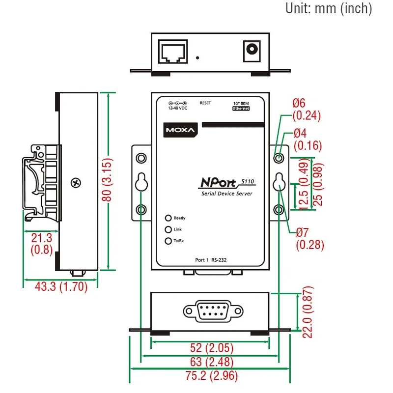 Купить MOXA NPort 5150 - 1-портовый асинхронный сервер RS-232/422/485 в Ethernet