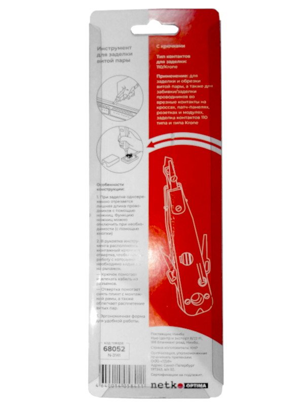 NETKO Optima N-3141 - Инструмент для заделки витой пары, тип 110/Krone, с крючками