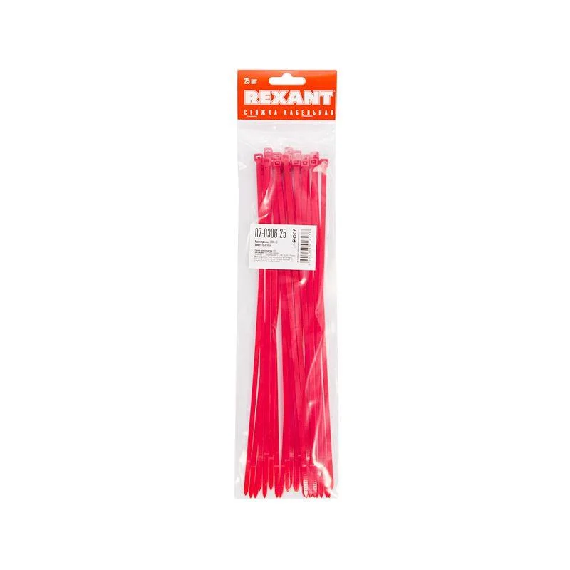 Купить Rexant 07-0306-25 - Хомут кабельный 4.8х300 нейл. красн. (уп.25шт)