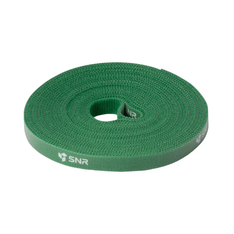 Лента (липучка) SNR-TP-5-9-GN предназначена для организации кабелей в жгуты, а также их крепления к кронштейнам или органайзерам. На одной стороне ленты находятся микрокрючки, а на другой - микропетли. При соприкосновении двух сторон микрокрючки зацепляются за микропетли, одна сторона ленты "прилипает" к другой.