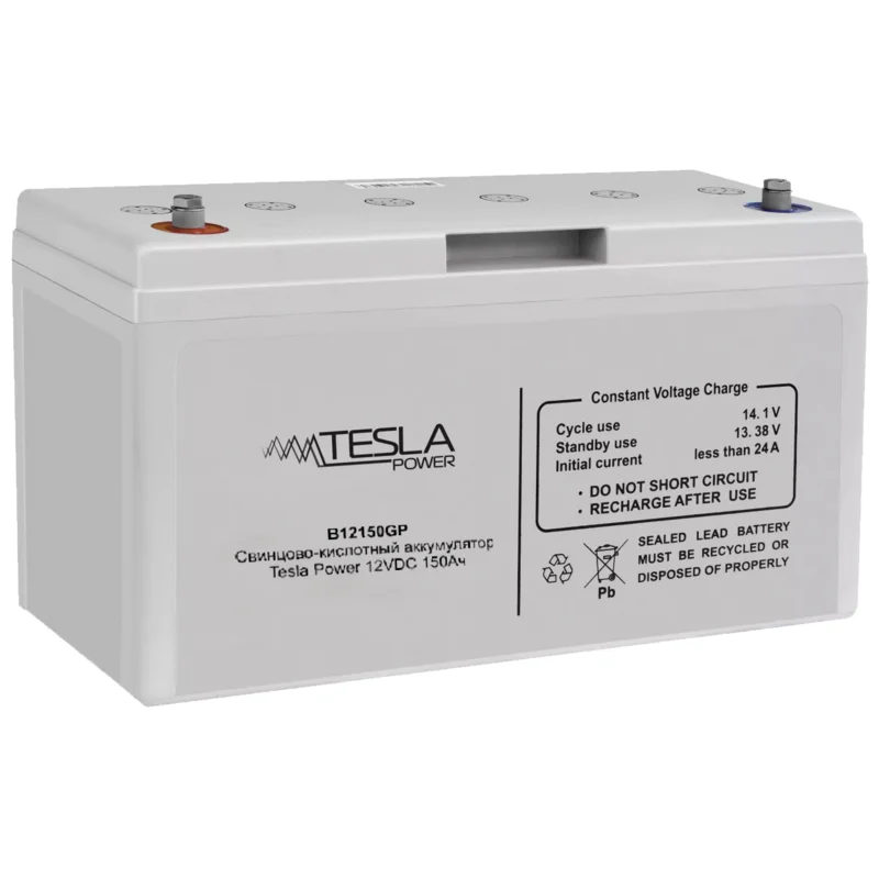 Tesla Power B12150GP - АКБ 12В, 150Ач, 3.3 mΩ, Максимальный ток разряда: 930 A, Максимальный ток заряда: 30 A, Вес: 44 кг, Тип клемм: M8